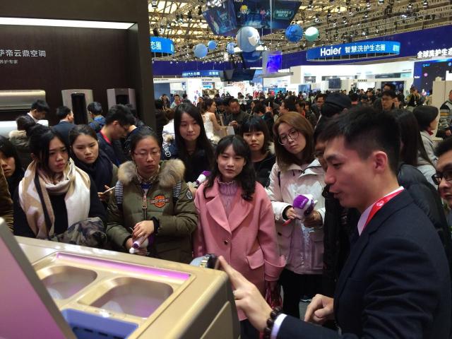 依据工业设计专业试验班培养目标,为开拓员工眼界,增进其与业界的交流和互动,提升员工的设计实践能力,William希尔官网入口于3月10日下午组织工设13级以及14级试验班员工参观了在上海新国际博览中心举办的中国家电博览会(AWE2016)。家博会(Appliance & electronics World Expo, 简称AWE)由中国家用电器协会主办,是目前家电行业规格最高的大型综合性展会。此次受参展企业海尔集团之邀工设专业近四十名师生参观了海尔展厅,并聆听了旗下品牌——卡萨帝(Casarte)系列新品的专业介绍。