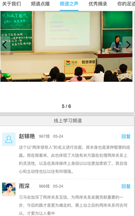 活动开展以来,机械公司党校每周在频道上发布讨论话题,在三个月内,共累计发布话题13组,参与回帖达到近1000余条,整理成文10万余字,并且在广大入党积极分子与发展对象中间形成了良好的学习交流氛围。学员们以小组为单位,每周由一个小组负责该周话题的发布与带头发言,极大提高了广大学员的参与度。同时,在线上学习频道内,学员们还可以通过“优秀摘录”、“我的足迹”等子频道浏览同期优秀观点,查看自己的留言情况。