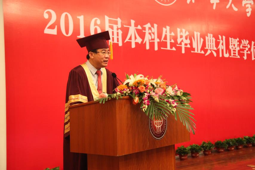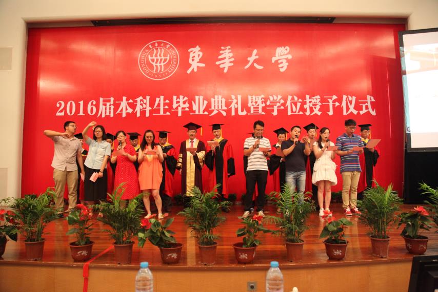 毕业典礼在庄严的国歌声中拉开序幕,公司党委书记朱民代表公司党政向全体毕业生表示祝贺,并赞扬了12级毕业生在科创等方面取得的成绩,勉励毕业生抓住机遇,成为创客时代的弄潮儿,发挥自己的最大潜能,充实而美好的生活。典礼上,鲍劲松老师作为导师代表发言。鲍老师用饱含深情的话语,勉励毕业生 “学为好人、持续学习”,并鼓励大家在面对人生选择时,不要害怕选择看起来最难走的路,“你的人生大敌就是堕入平庸”。工设1201于雪琪父亲于涛先生作为家长代表发言,他表达了对老师们的衷心感谢和崇高敬意,并祝福公司培养出更多栋梁之才。毕业生代表卓越机械1201鲍振强,作为一名从部队光荣退伍并获得直研机会保送至火箭军工程大学继续攻读硕士学位的优秀员工,他用一首《别东华》的诗作“冬去春来已数载,回眸东华,忆往夕,思往事,离别不悲。美哉我东华学子,定不负东华!东华往事随风去,比及离别,情之深,意之浓,相聚有时。壮哉我机械英才,必成国之栋梁!” 感恩母校对自己的培养。在校生代表工设1303班徐少东,表达了学长学姐们的美好祝福和对未来的希冀,“昨天你们用壮志书写蓝图,今日我们用豪情诵读华章。今天过后,我们就成了你们。你们用博识多礼磨去了我们的稚气肤浅,你们用志存高远坚定了我们的自信勇气。因为你们的援助引领,我们步步成长;因为你们的赞许鼓励,我们逐梦前行。你们为东华、为机械写下的荣耀,将由我们继续谱写”。