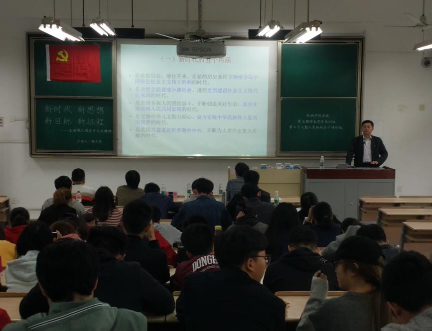 钱文华老师在报告中指出,党的十九大报告站在新时代历史方位,鲜明提出了习近平新时代中国特色社会主义思想和基本方略,深刻回答了事关党和国家事业长远发展的一系列重大理论和实践问题。举旗定向、高瞻远瞩、思想深邃、气势磅礴。报告是中国共产党人的“宣言书”,是各族人民团结奋进的“领航灯”,是全面建设社会主义现代化强国的“动员令”。