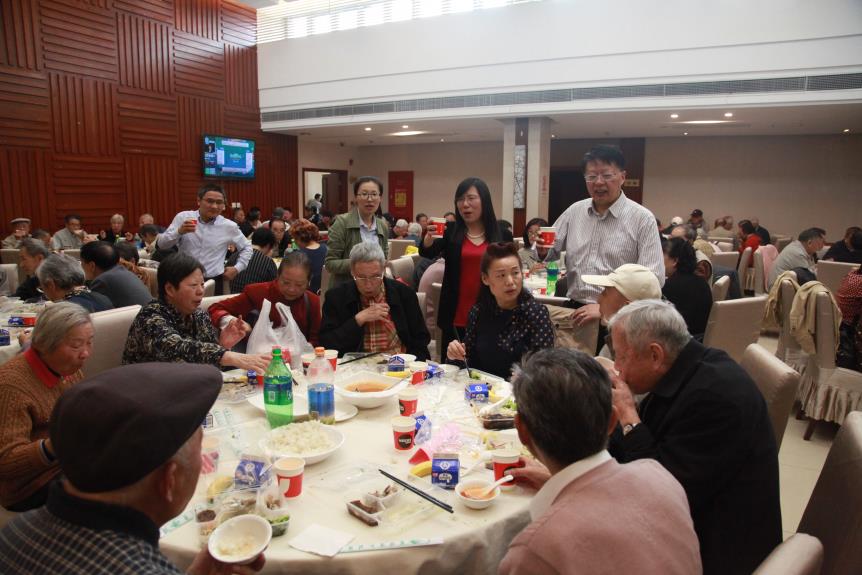 莫道桑榆晚,为霞尚满天。一百三十多位退休职工从上海各区赶来,欢声笑语、齐聚一堂。老教师们围坐一起畅谈过去的岁月无不激动不已,虽已年迈,但回忆起当年的往事依然神采奕奕。席间经理、书记逐一问候每位老同志,表达了全院师生的关心与问候。