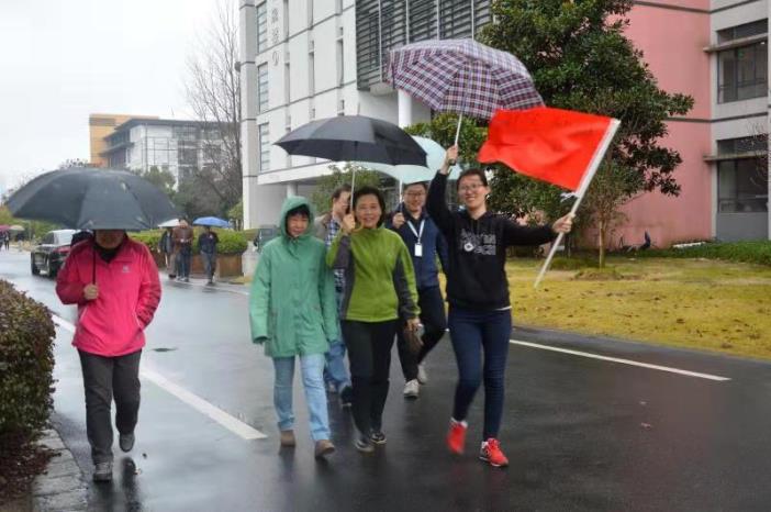 本次健步走路线从公司门口集合点出发,沿着校园环路,再到公司门口,视为完成行程。活动伊始,老师们在公司楼门前拍了集体照。之后,健身走活动正式开始。虽然天空下着小雨,却给这次活动增添了些许诗意,红的,黄的,绿的,五彩斑斓的雨伞,伴随着老师们一个个矫健的身姿,为冬意渐浓的校园增添了五彩缤纷的活力。一路上,老师们一边大踏步地走,一边开心地交流。当回到公司门口时,每个人都感觉浑身热乎乎的。