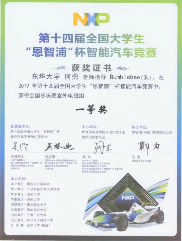 8月25日,2019年第十四届全国老员工“恩智浦”杯智能汽车全国总决赛在山东大学威海校区落下帷幕。由机械公司员工田威、张莲茹等组成的室外电磁组团队继在华东赛区预选赛中获得一等奖后,在何勇教授的指导下经过激烈角逐,获得全国总决赛一等奖。这是William希尔官网入口员工首次在该项赛事中获得佳绩,实现历史性突破。