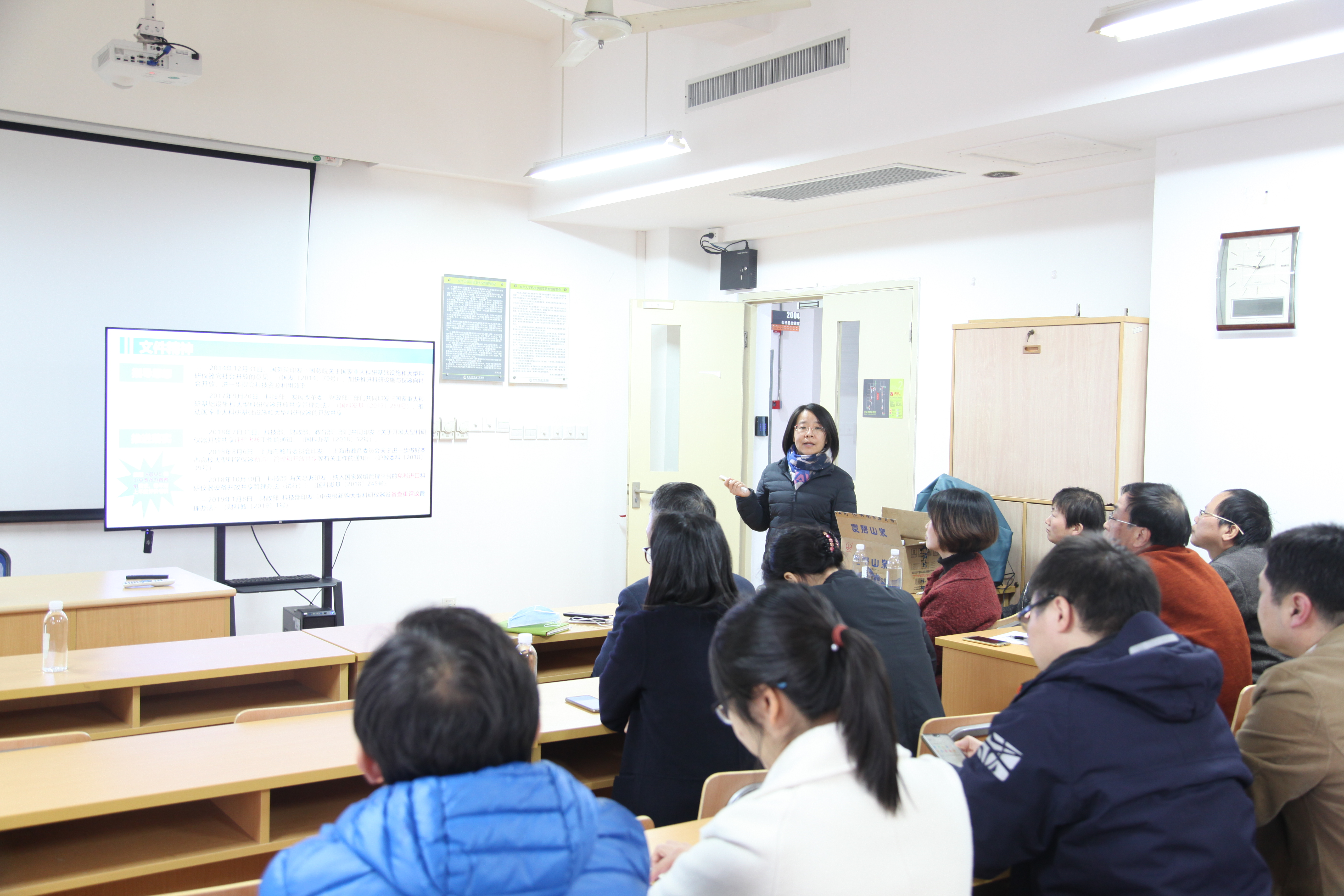 此外,骆轶姝副处长还介绍了有关购置设备分级论证的相关规定,仪器设备共享收费标准的相关依据等。设备责任老师就大型仪器设备的使用问题、开放机时问题等与资产处老师展开交流讨论。
