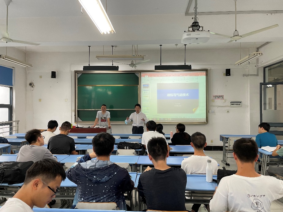 本学期,公司共开设118门课程,其中本科生73门课程,研究生45门课程。9月6日是公司2021-2022学年第一学期开课的第一天,为全面了解新学期教学情况,确保新学期开学教学工作正常有序,经理单鸿波、副经理周其洪早早来到松江校区教学楼检查开学第一课教学情况,先后走进《设计速写》、《液压与气动技术》和《设计与制造》本科生课堂,分别同莫伟平老师、陈冰冰老师、费胜巍老师、丁司懿老师以及同学们亲切交谈,仔细询问了本学期的课程设置、教学安排。