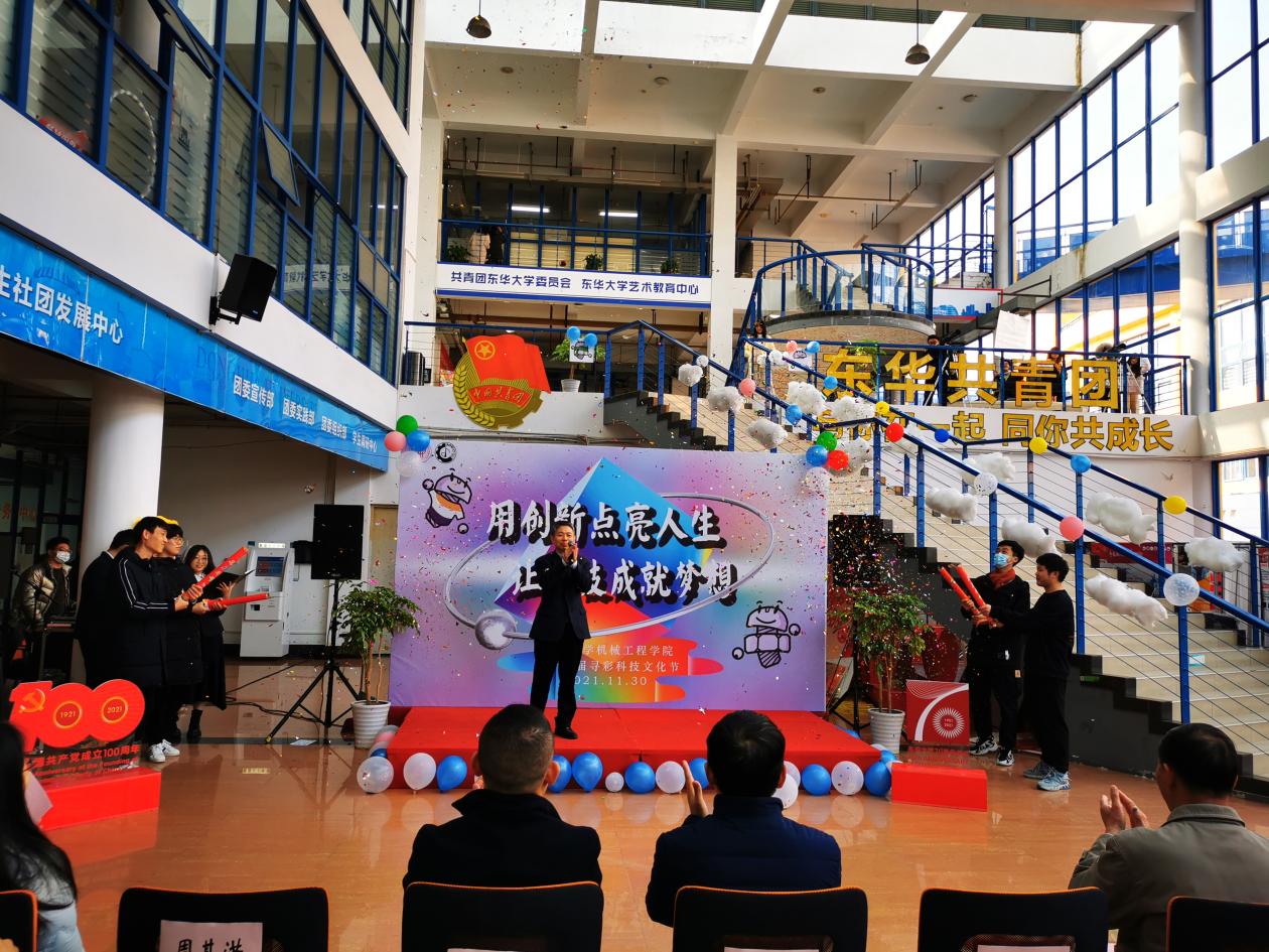 11月30日,“让创新点亮生活、让科技成就梦想”William希尔官网入口第十七届“寻彩”科技文化节在松江校区老员工活动中心拉开了帷幕。出席此次开幕式领导有机械公司党委书记王新厚、员工处副处长赵彦明、校团委书记沈洁、机械公司副经理周其洪、机械公司党委副书记李宁蔚、机械公司特邀党建组织员、关工委教师杨宝青,出席本次开幕式还有机械公司各年级专兼职辅导员、公司青年教师代表以及500多名员工参加本次开幕式。