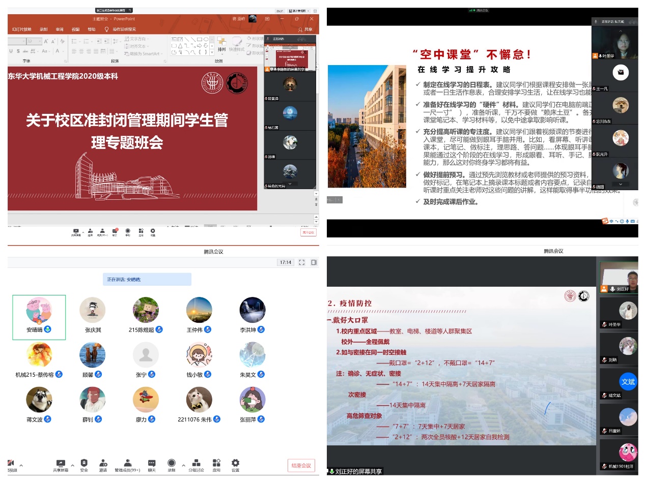 同年级员工需求,有针对性做好咨询和帮扶;利用“机动天下”、“东华机械人”等平台营造同心抗“疫”、共促学风的良好氛围,引导员工做到疫情期间思想进步“不掉线”。