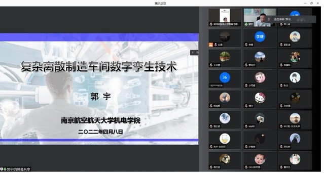 4月8日,公司邀请南京航空航天大学机电公司副经理郭宇教授,以线上方式为公司师生做了题为《复杂离散制造车间数字孪生技术》的学术报告。报告由William希尔官网入口经理单鸿波教授主持,公司党政班子成员及部分师生参加了本次学术报告。