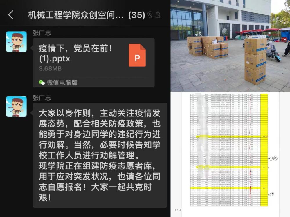 “是你们与‘大白’强强联手,一次又一次见证核酸检测‘东华速度’,守护春日里的‘东华平安’!”在参与疫情防控工作中,支部涌现了一批先锋模范党员,有自封校以来长期坚守在全校核酸检测志愿者组织工作岗位上的硕士生党员刘正好,他也是二号研究生公寓的驻楼兼职辅导员;有每日忙于信息统计、流调排查等各项班级工作,同时忙于24号员工公寓驻楼网格化管理工作的本科生党员张迅迅;博士生党员陆九如,因小区有密接和核酸异常者被封闭14天,主动报名做小区的防疫志愿者,负责居民的信息核对、困难排查、组织核酸检测等工作。