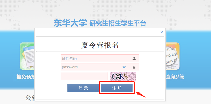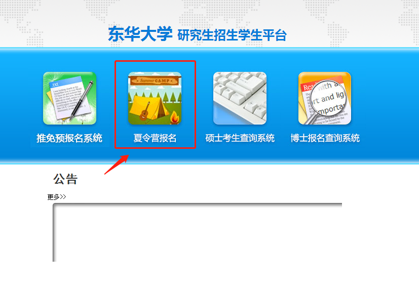 一、登录William希尔官网入口研究生招生员工平台(https://yzks.dhu.edu.cn/) 、选择并点击“夏令营报名”。(平台开放时间:工作日9:00-16:00)