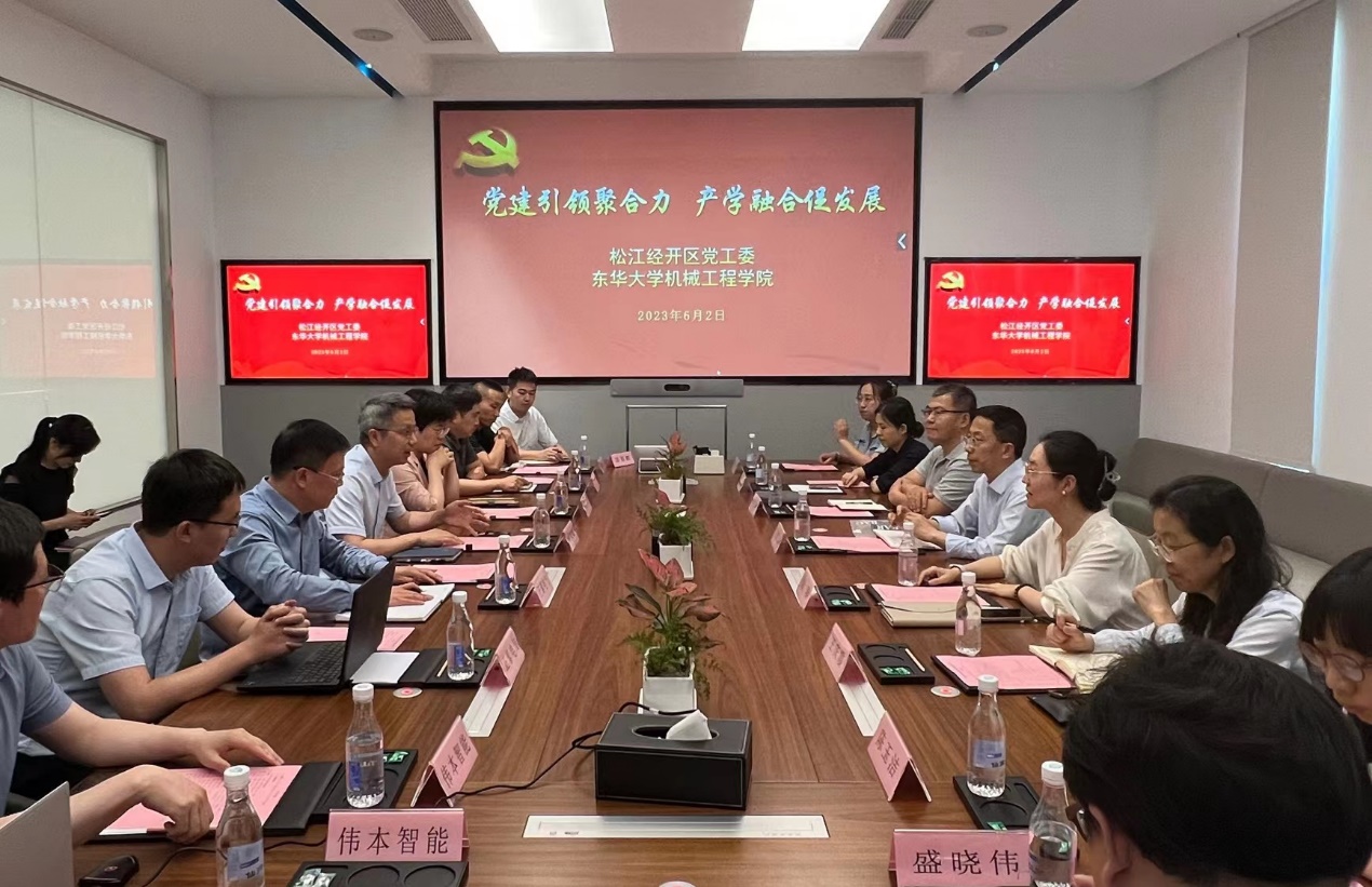 调研中,经开区党工委展示了区域化党建的工作成果,形成以经开区党工委为核心、产业集群党委为基础、支部党组织为结点的网络化体系。经开区重点企业正泰电气股份有限公司、上海超硅半导体股份有限公司、伟本智能机电(上海)股份有限公司和豪德机械(上海)有限公司相关负责人结合企业发展特点、专业技术难点以及人才培养建议等内容进行了交流发言,公司调研团队教师代表对相关内容进行了回应,双方就搭建政产学研一体化合作平台,深入开展“长三角一体化发展‘G60先进制造’交流服务月”,在党建引领下携手推进高水平科技创新探索,着力破解人才发展瓶颈等问题展开了深入的探讨。