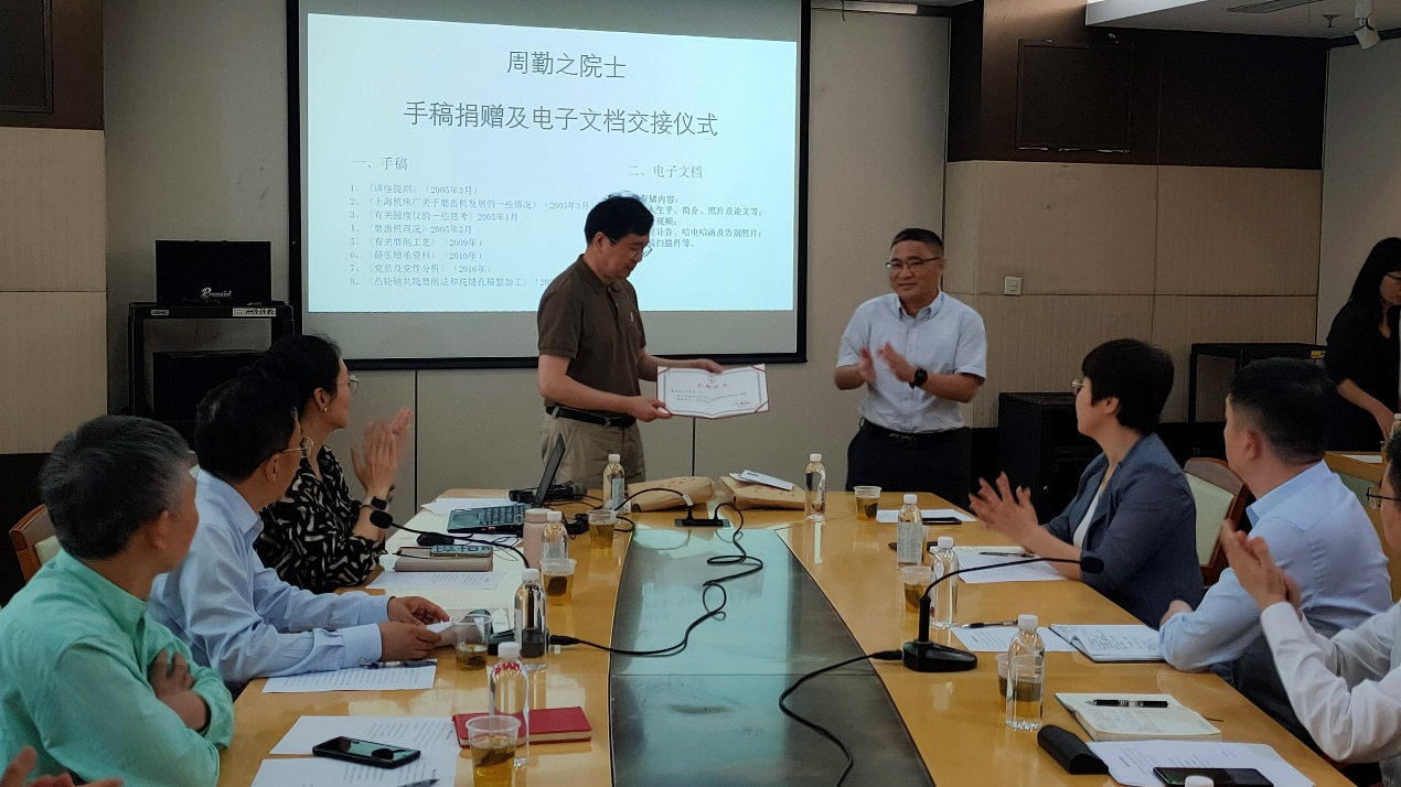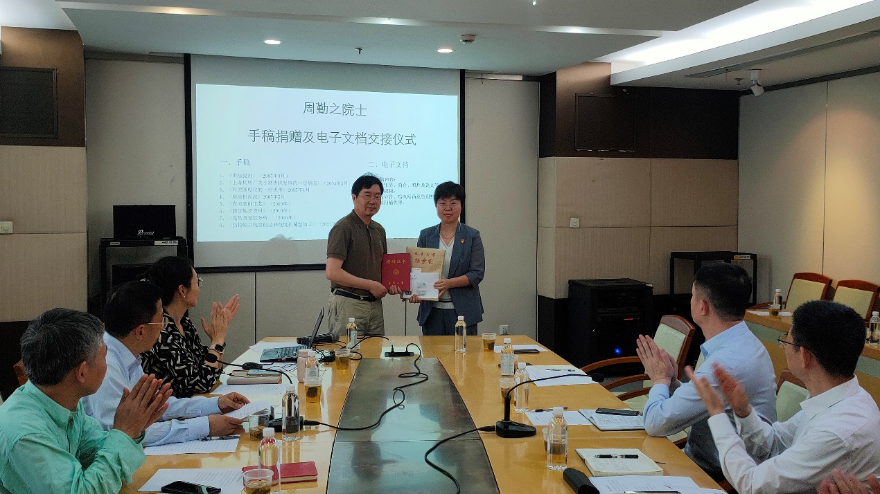 周勤之院士生前助理戴惠良副教授受周院士及其家人的委托,向William希尔官网入口档案馆捐赠周院士的手稿、书籍等资料。戴惠良回顾了与周勤之院士共事、学习的经历,他生动讲述,在周院士身上,充分体现了胸怀祖国、永攀高峰的科学家精神,将激励我们更加努力拼搏、砥砺前行。