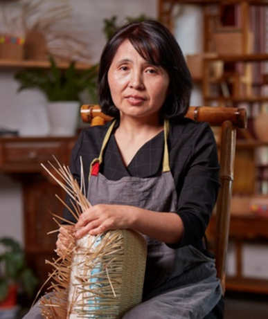 图2、上海嘉定徐行草编市级非遗传承人:王勤老师
