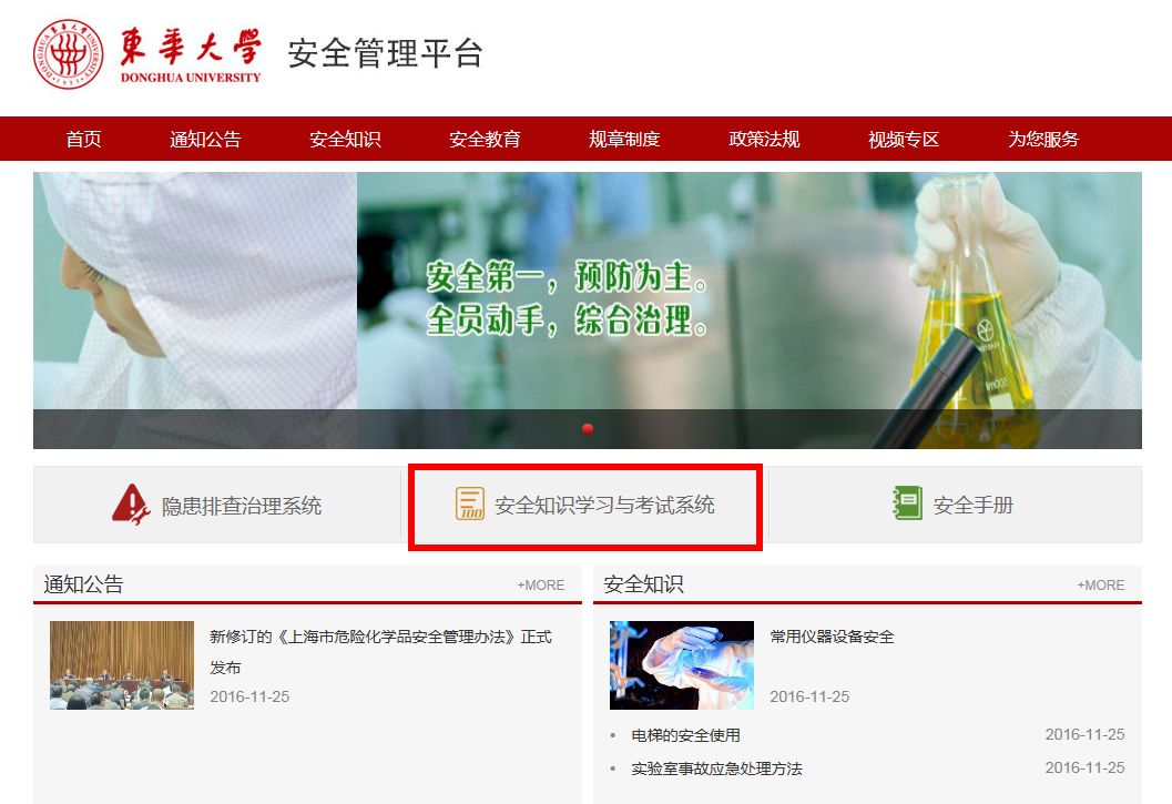 1、网址:https://aqgl.dhu.edu.cn(注意:必须在校园网内访问,如在家或宿舍内访问,需要用VPN;浏览器建议使用360极速模式或Google Chrome )。