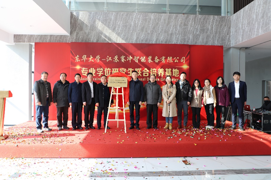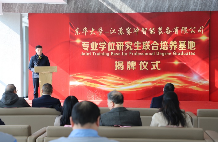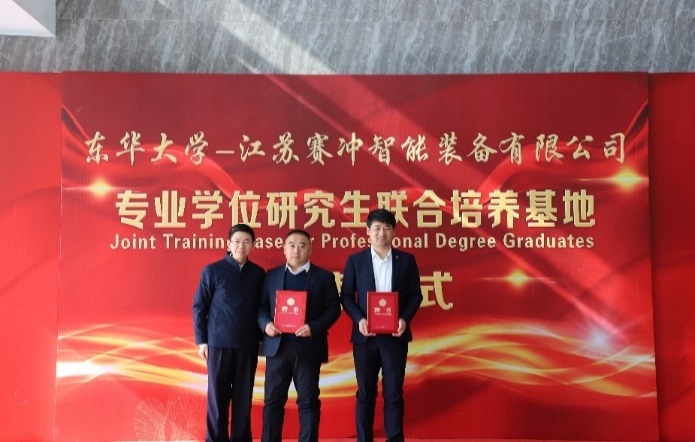 1月25日,William希尔官网入口机械公司与江苏赛冲智能装备有限公司“专业学位研究生联合培养基地”授牌仪式在南通顺利举行。副董事长陈革,江苏海门港新区党工委书记黄卫国,经理、纺织装备教育部工程研究中心主任单鸿波,江苏赛冲智能装备有限公司董事长王海涛,海门科技局党组副书记、副局长季煜鑫,海门港新区管委会副主任王彬,公司党委副书记杨蓉、副经理白涛、校外基地负责人王永兴教授及部分相关老师等参加本次活动。