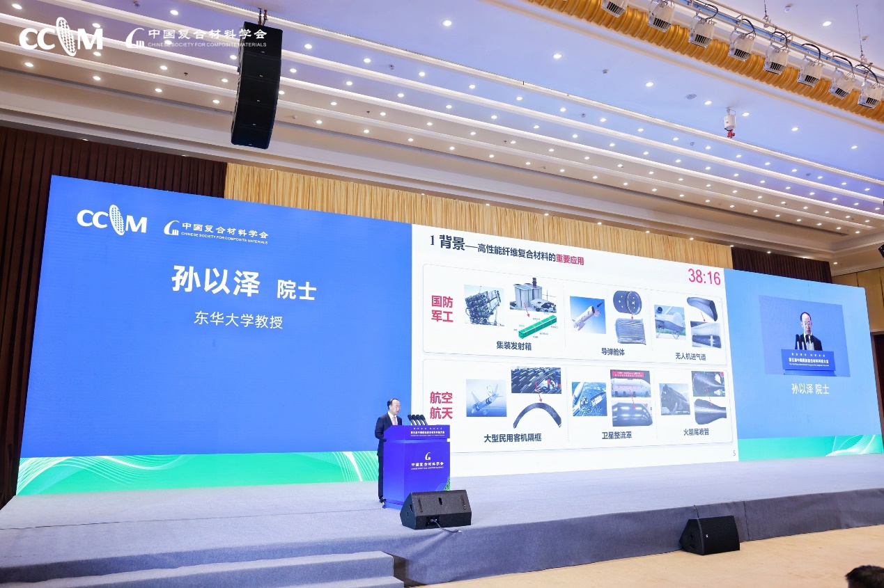 2024年7月26日上午,公司孙以泽院士受邀出席“第五届中国国际复合材料科技大会”,并在大会上作“高性能纤维复合材料结构件自动化成型关键技术与装备”主旨报告。大会由中国复合材料学会主办,新疆维吾尔自治区科学技术厅、乌鲁木齐人民政府、新疆大学、中国复合材料学会秘书处、北京理工大学、中国科公司新疆理化技术研究所、中航复合材料有限责任公司、威海光威复合材料股份有限公司承办。19位院士以及来自全国各地的复合材料龙头企业及顶尖科研院所专家、学者数千人出席会议。