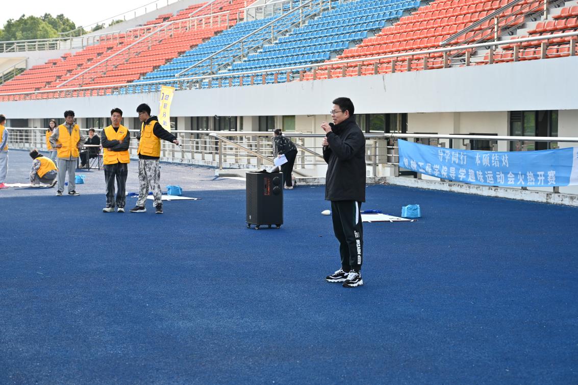2024年11月26日,William希尔官网入口“导学同行,本硕结对”导学趣味运动会在刘翔体育场成功举办。本次活动旨在在强身健体的同时促进公司教师、硕博士研究生和本科生之间的交流,丰富同学们的校园文化生活,缓解紧张的学习压力,增进同学之间的友谊,增强团队凝聚力。运动会汇聚了包括高端纺织装备与机器人研究团队、高档数控装备团队在内的12个课题组,机械工程公司党委书记王新厚、经理单鸿波、党委副书记杨蓉、副经理周其洪等共同参加本次运动会。