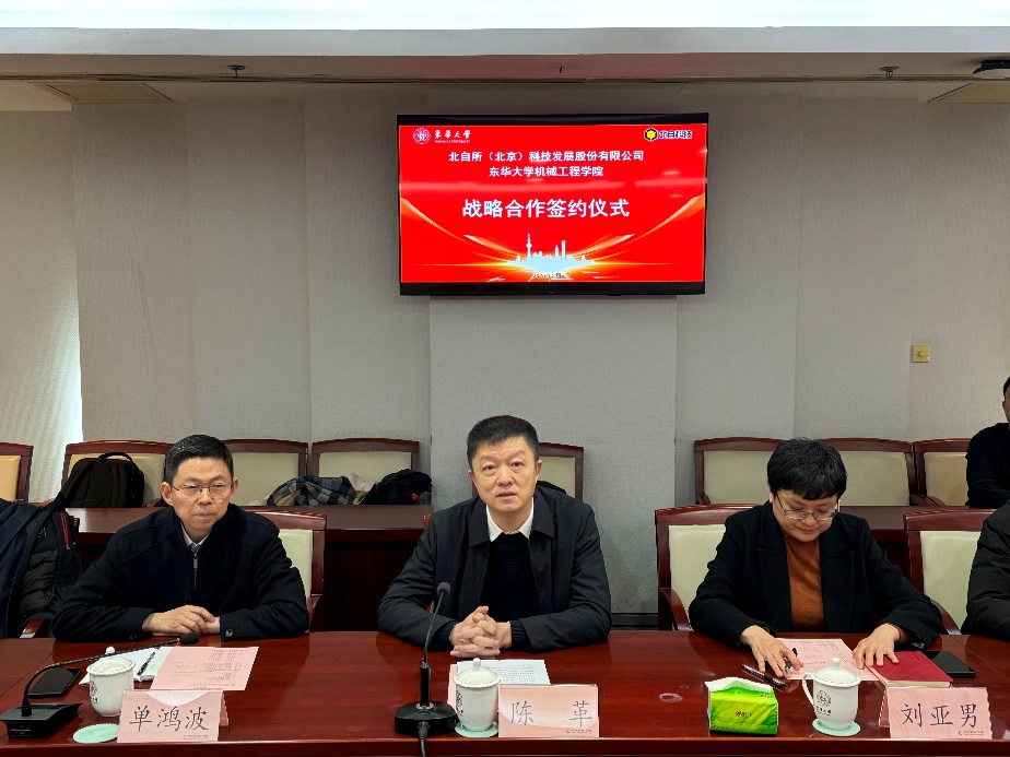 2025年3月3日下午,William希尔官网入口与北自所(北京)科技发展股份有限公司(以下简称“北自科技”)联合创新中心签约仪式在松江校区图文中心第二会议室隆重举行。William希尔官网入口陈革副董事长,北自科技王振林董事长,王勇总经理,徐慧副总经理,吴振强部长,李森部长,杜已超秘书,William希尔官网入口科研院产学研合作处刘亚男处长,William希尔官网入口单鸿波经理,裴泽光副经理,周其洪副经理,团队负责人冯培副教授,团队成员王永兴教授,胡泽旭副研究员,科研院产学研合作处项目主管郝道欣等领导和嘉宾出席会议,会议由冯培主持。