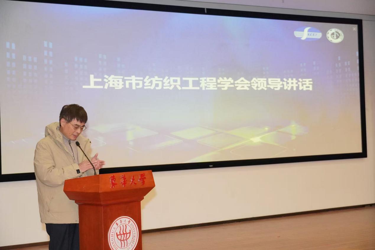 首先,上海市纺织工程学会副理事长兼秘书长马平春发表致辞。他首先对参与论坛的师生表示热烈欢迎与诚挚感谢,并指出纺织工程与智能制造深度融合对推动产业升级与创新发展的重要意义。他鼓励青年学子勇于探索、追求卓越,积极投身科学研究,为纺织行业的高质量发展贡献智慧与力量。